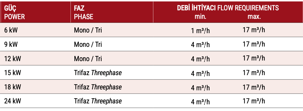 • 6 kW ile 24 kW arasında değişen güç seçeneği